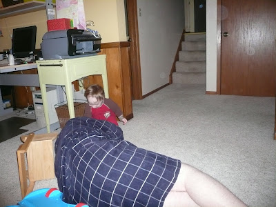 Finn and Daddy playing Wii-- watch him, he thinks he's really playing, and his reflex timing is not that far off from Tom's!